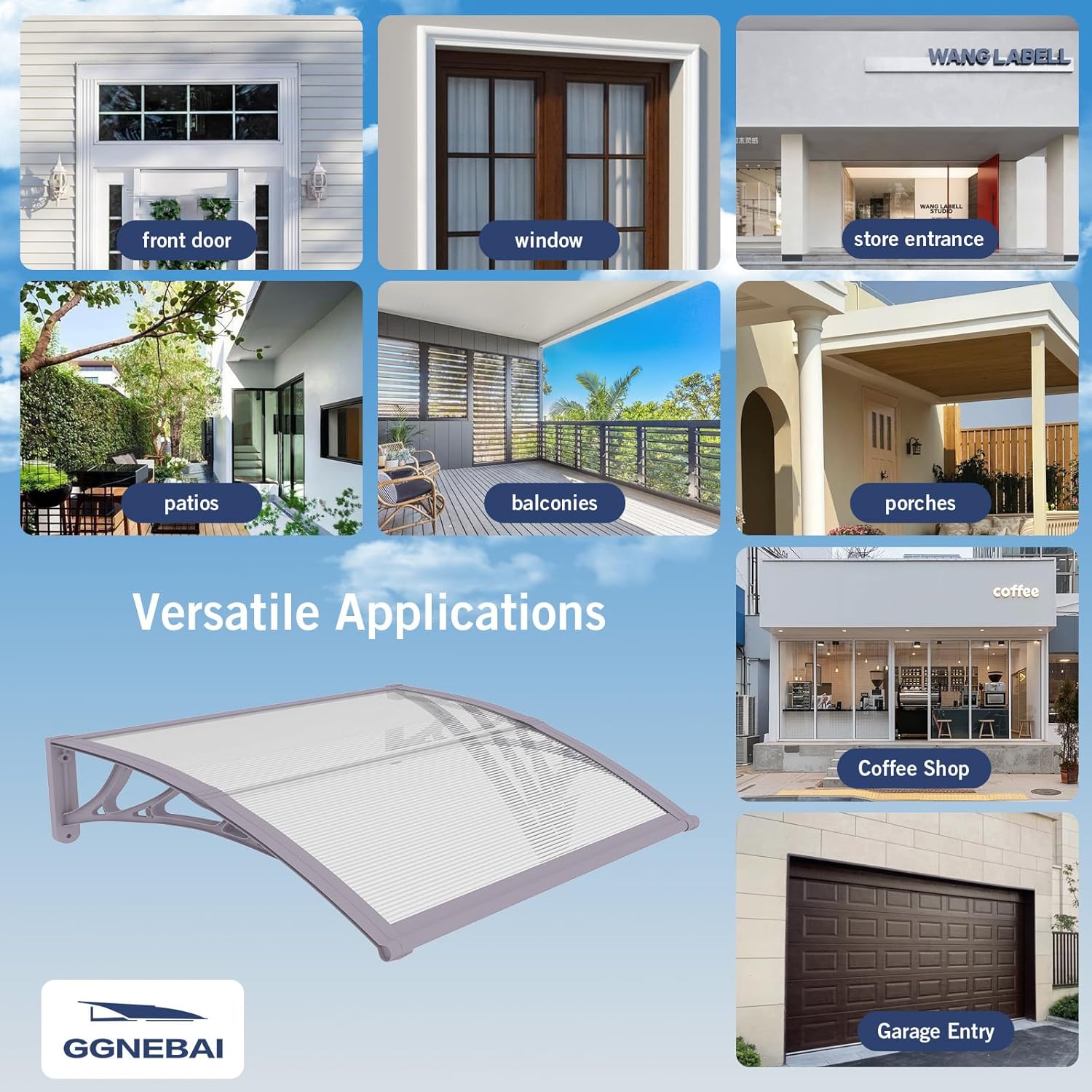 - Strong Durable, and Stylish: This window awning is made from durable PC panels and strong ABS brackets,making it resistant to corrosion, fading,and impact.Whether in freezing winters or scorching summers, this patio awning can handle it all. Its versatile design makes it suitable for both residential and commercial settings, seamlessly blending with any decor. Perfect for awnings for windows outside or door canopies